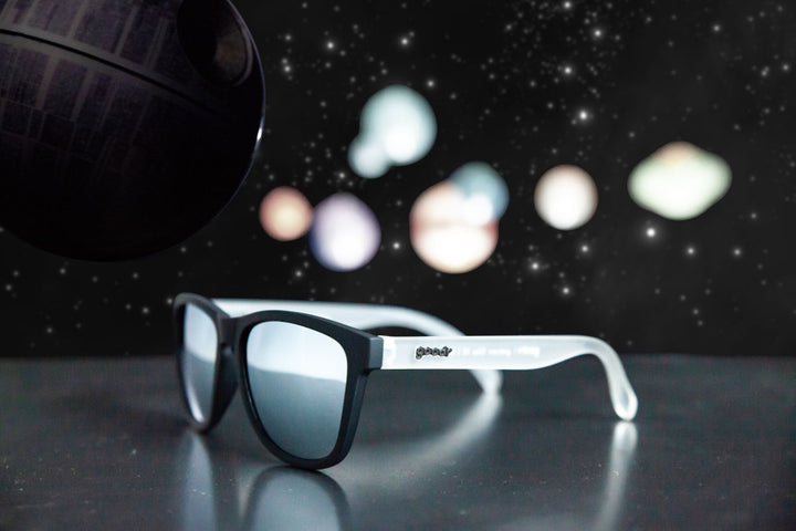 Blast off on a cosmic adventure with The Empire Did Nothing Wrong, limited-edition sunnies with black-and-clear frames with chrome lenses. We jumped into an intergalactic wormhole to bring back this style from 2019! No slip or bounce while moonwalking.